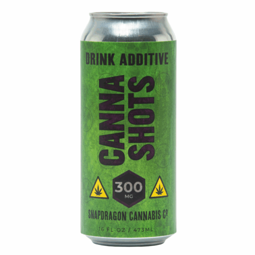 Canna Shots are a high-potency, water-soluble drink additive designed for at-home beverage infusion. Each 16-oz can contains 300mg of Delta-9 THC using RINS9 nano-emulsion technology, allowing the THC to fully disperse into liquids for fast, consistent effects.